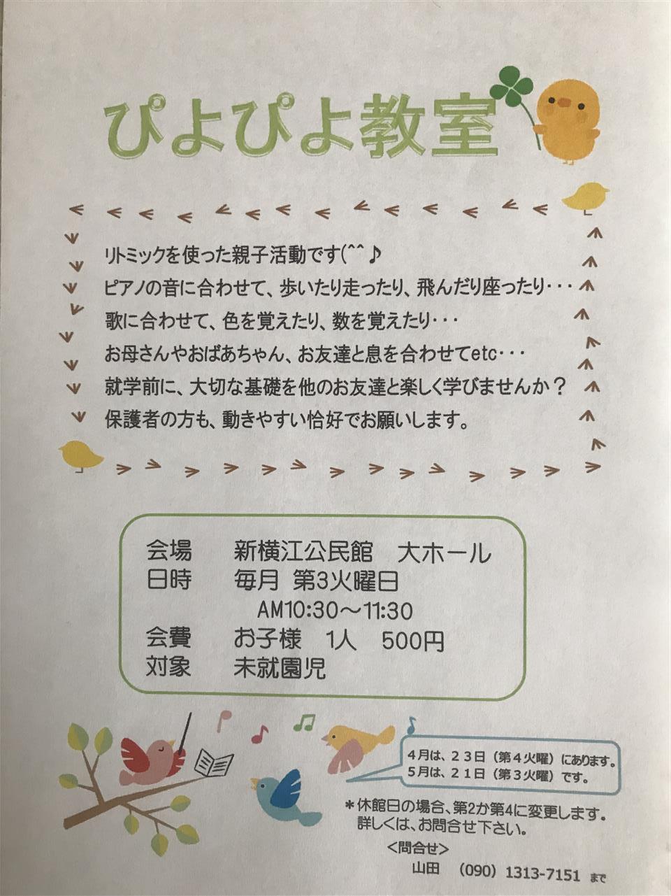 いつも、第3水曜日に開催しているぴよぴよ教室ですが、3月は第1水曜日の6日に変更となります。